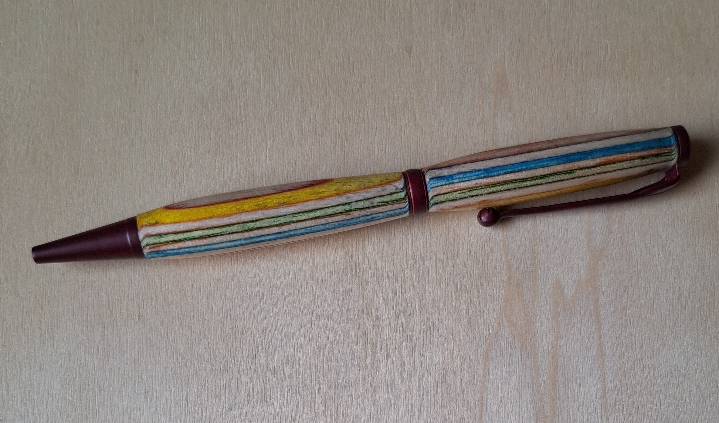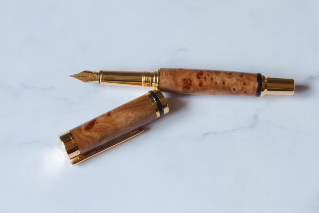 Daarnaast heb ik ook nog wat bijzonder pennen gemaakt, zoals onderstaande vulpen. Deze mooie vulpen heb ik voor mijn zus gemaakt, die in Amerika woont. Haar eigen vulpen was helemaal opgeschreven en ze wilde graag een nieuwe hebben.