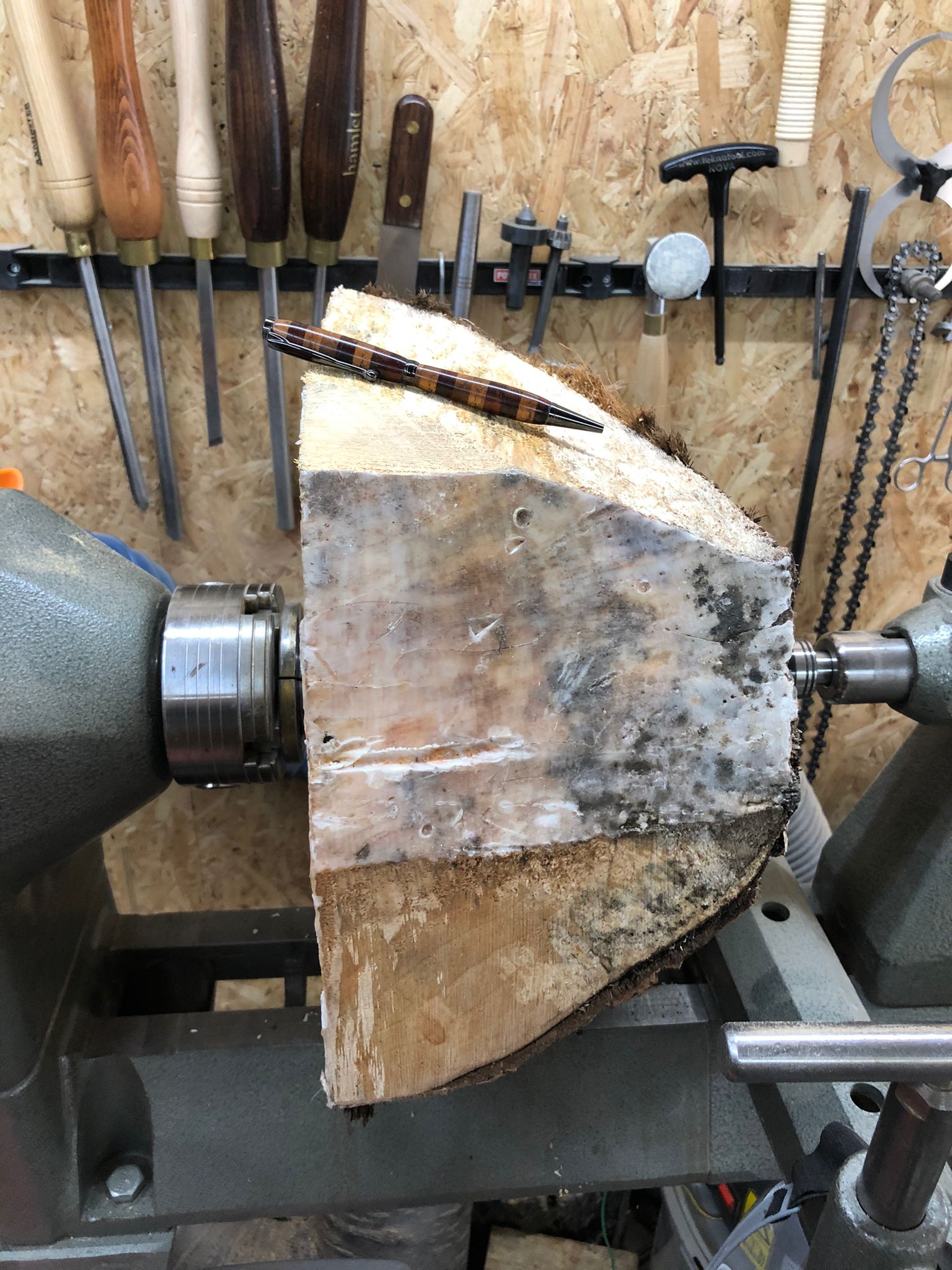 Zo heb ik vorige week een workshop gegeven aan een moeder en dochter. Moeder was vorig jaar geweest op de open dagen en is sindsdien zo enthousiast, dat ze zelf ook wil gaan houtdraaien. En dan met name het maken van pennen. Dus ze wilde graag een workshop om de kunst af te kijken en om te zien of het echt iets voor haar is. En ze was heel enthousiast!