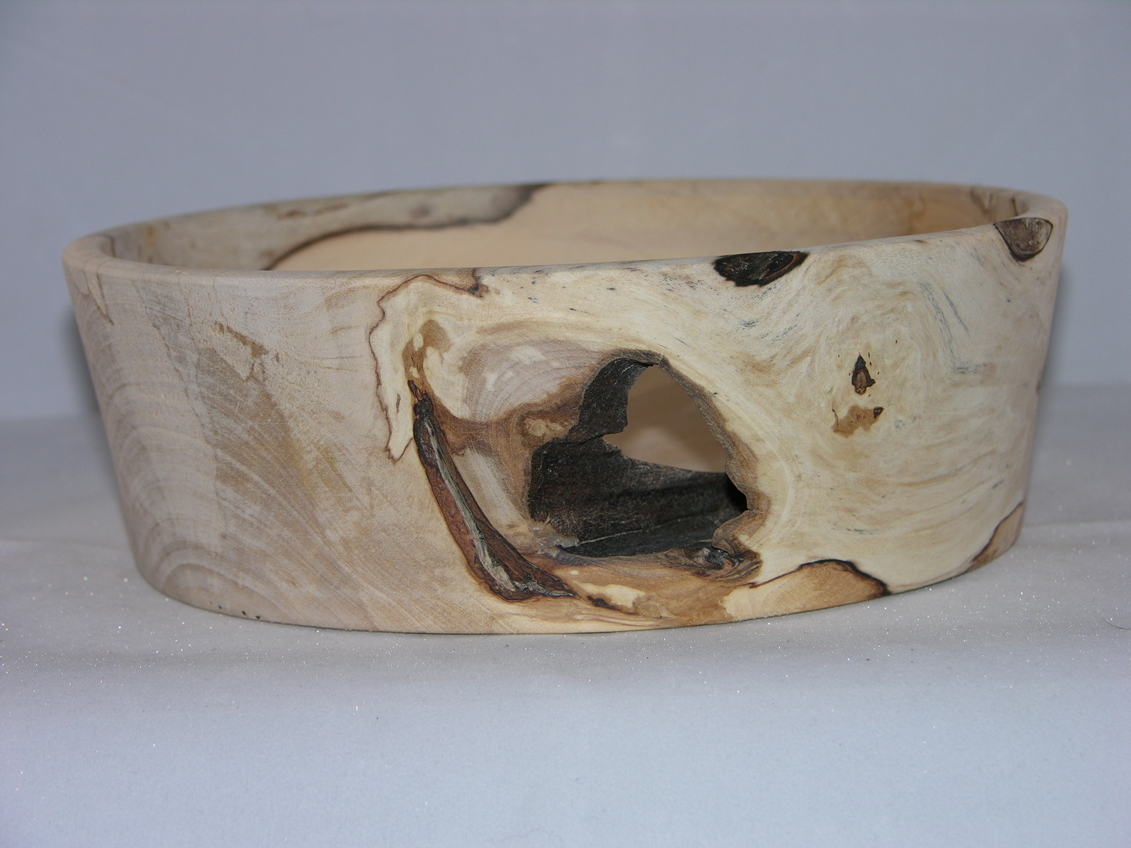 Laatst ben ik in het bezit gekomen van een flink stuk hout. Ik wist gelijk dat ik daar een schaal van wilde draaien. Nou moet ik zeggen dat hij niet helemaal geworden is zoals ik dat wilde. Deels ligt dat ook wel aan het hout zelf. Bovendien zit er een flinke noest met gat in.