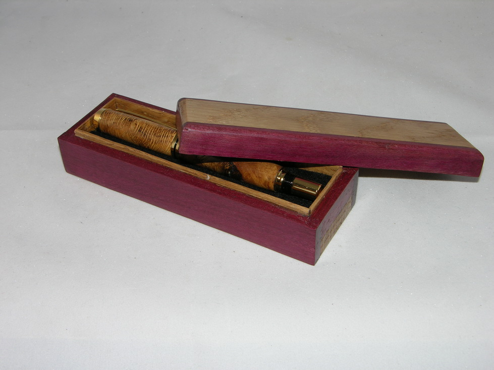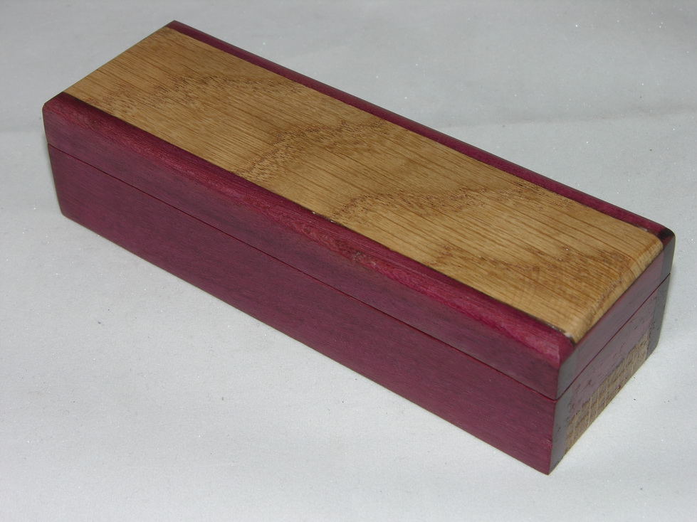 Speciaal voor de pen heb ik ook een doosje gemaakt van purperhart en eiken. De pen past er precies in en het is net wat leuker om te geven.