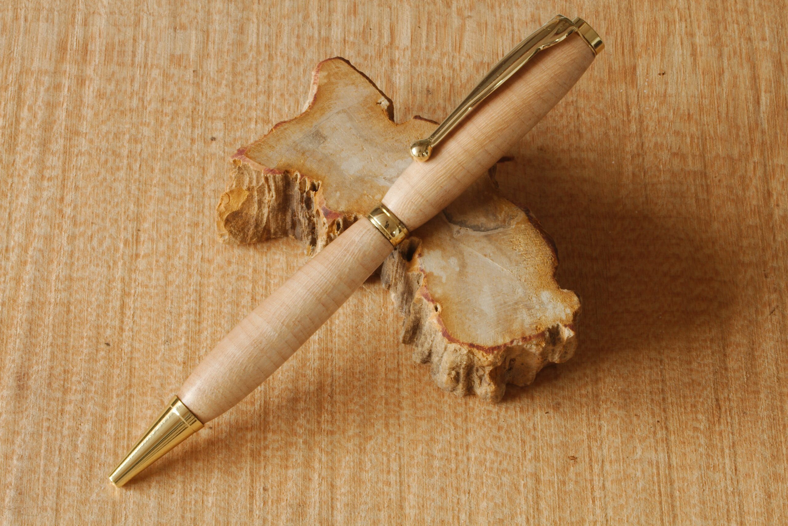 Materialen: Amerikaans Grenen, Maple, Ceder, Olijf, Goudenregen, Fancy pen goud + gunmetal, Rollerball goud.