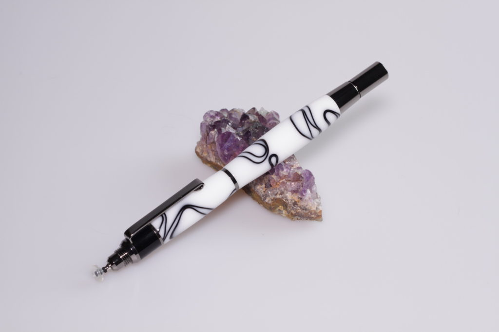 Materialen: Acryl black swirl, Stylus closed endcap kevlar.