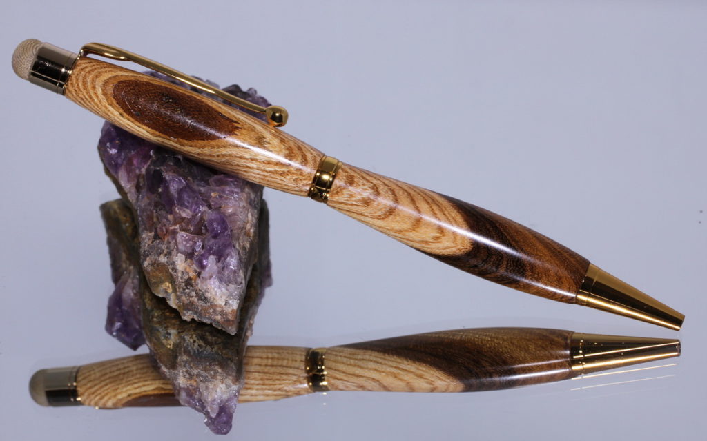 Als je graag zo’n pen zou willen hebben kan dat. Je kunt zelf aangeven welke houtsoort en of je de combinatie wilt met goud, zilver, etc. je kunt me altijd een bericht sturen indien je daar vragen over hebt.