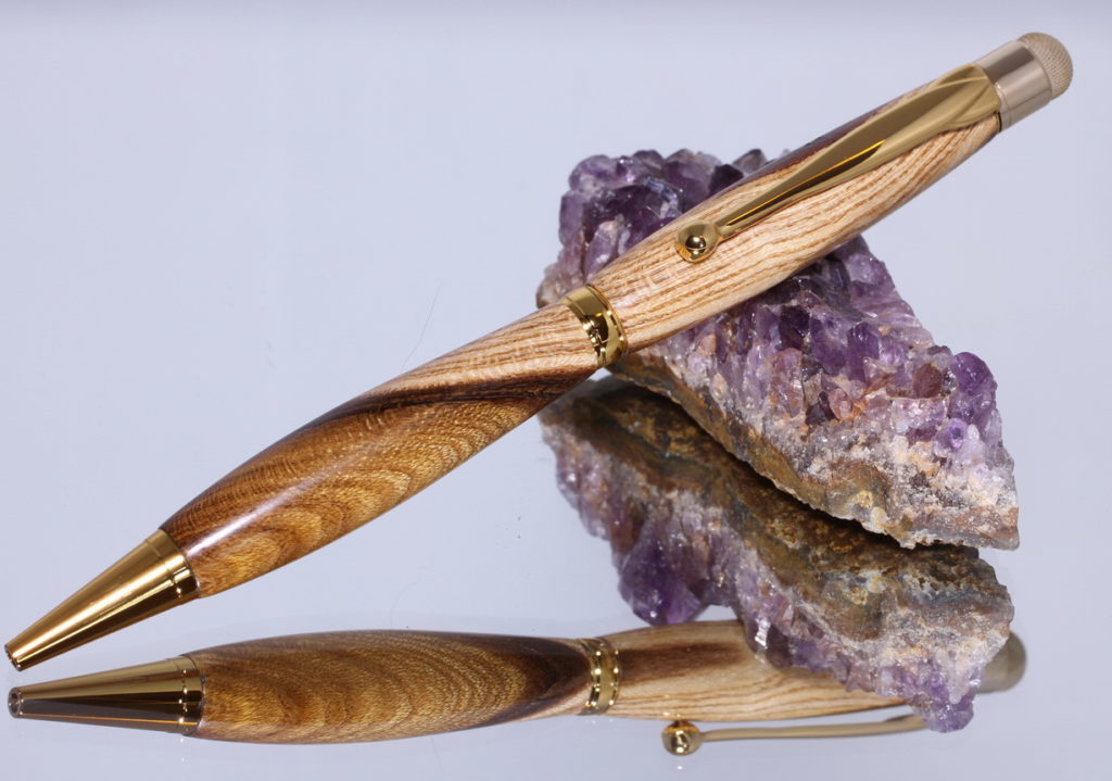 Als je graag zo’n pen zou willen hebben kan dat. Je kunt zelf aangeven welke houtsoort en of je de combinatie wilt met goud, zilver, etc. je kunt me altijd een bericht sturen indien je daar vragen over hebt.