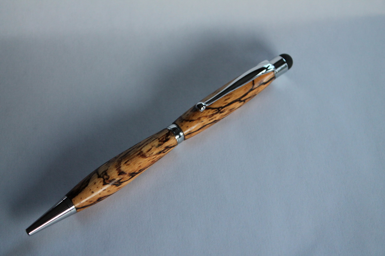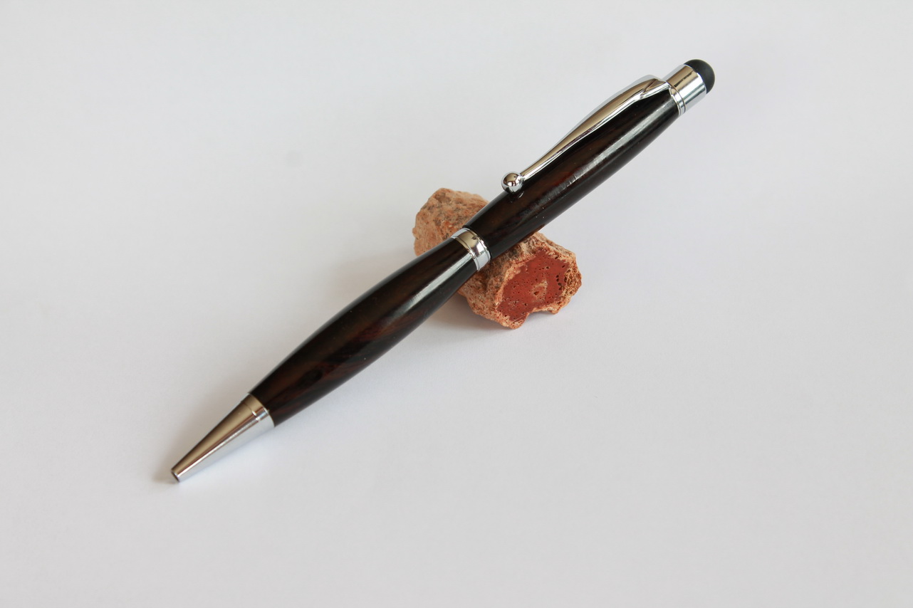 Om te laten zien wat er allemaal mogelijk is met de diverse houtsoorten en de ipad stylus, heb ik hier diverse pennen met verschillende houtsoorten.