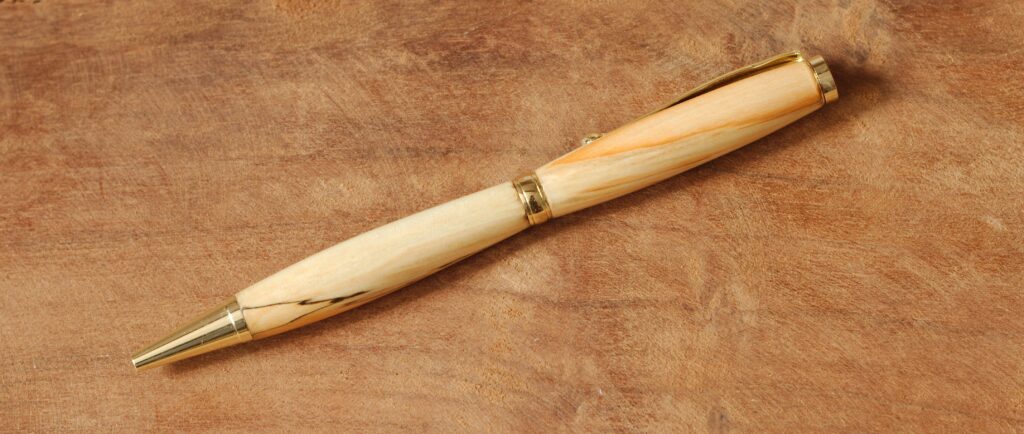 Ik heb er voor de buurvrouw er een mooie pen van gemaakt en afgewerkt met goud. Dit geeft een hele luxe uitstraling. Fantastisch om zo’n pen te hebben en om mee te schrijven!