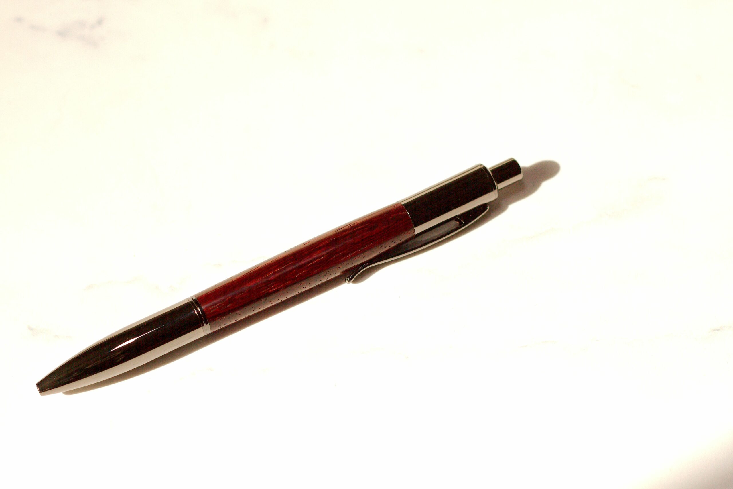 De pen is na het schuren en polijsten afgewerkt met Aussie Oil. Dit geeft een mooie diepe kleur aan het hout.