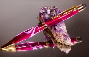 Ik kreeg een opdracht om een roze acryl pen te maken. Nou heb je roze in verschillende kleuren, alleen niet zo heel veel keus in acryl. Het roze wat ik vond, was baby roze. Persoonlijk vind ik dat geen kleur om een pen van te maken voor een volwassene. Verder zoekend vond ik acryl wat de naam donker orchidee had. Die kleur stond me veel beter aan.