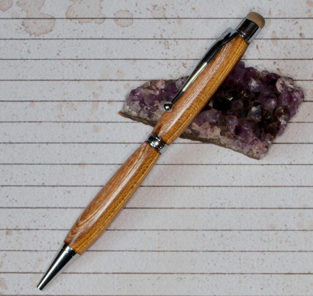 Prachtige pennen waren erbij, maar ik hou het toch liever op de natuurlijke materialen, zoals hout. Veelal gebruik ik inlands hout, maar ik heb ook buitenlandse houtsoorten in mijn bezit. Dus altijd is wel wel voor iedereen een mooie houtsoort op voorraad.