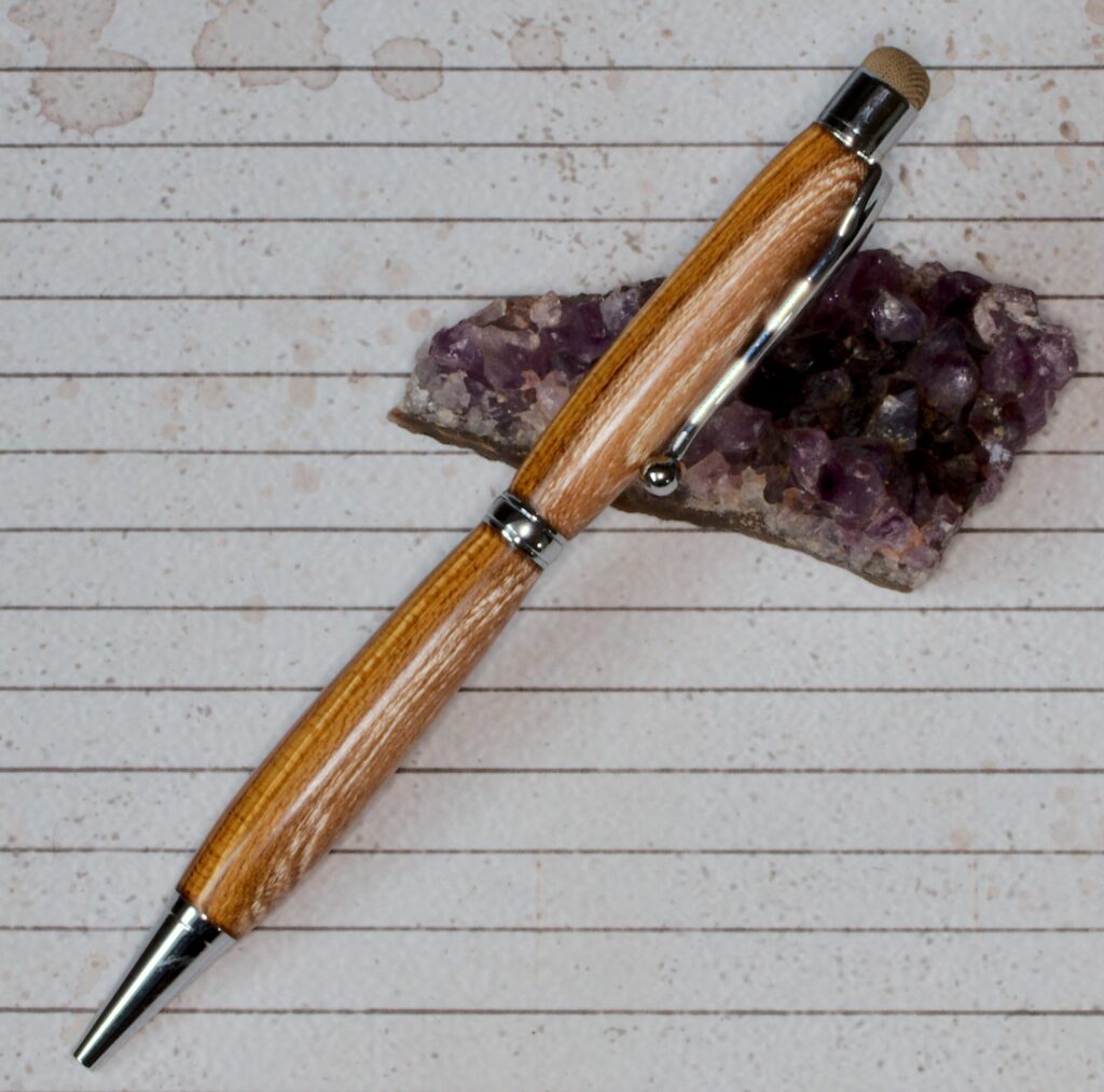 Materialen: Goudenregenhout, Fancy pen stylus chroom.