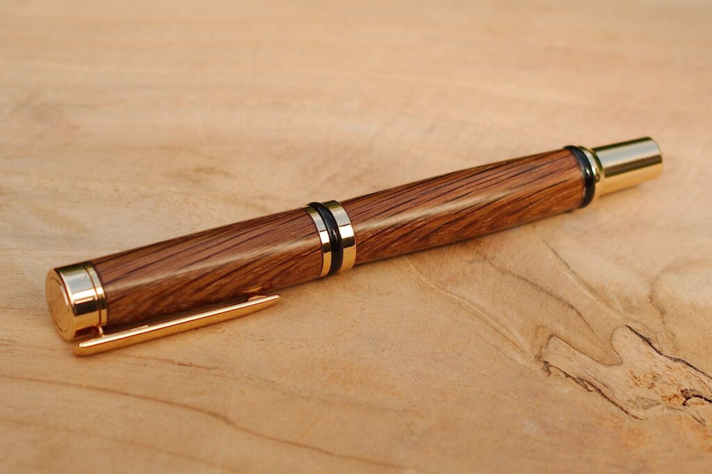 Een prachtige pennenset die ik nog niet had laten zien, is de onderstaande gouden Cameron set van een vulpen en rollerbal. Beide zijn gemaakt uit het ruim 500 jaar oude Eikenhout van onze St. Joriskerk.