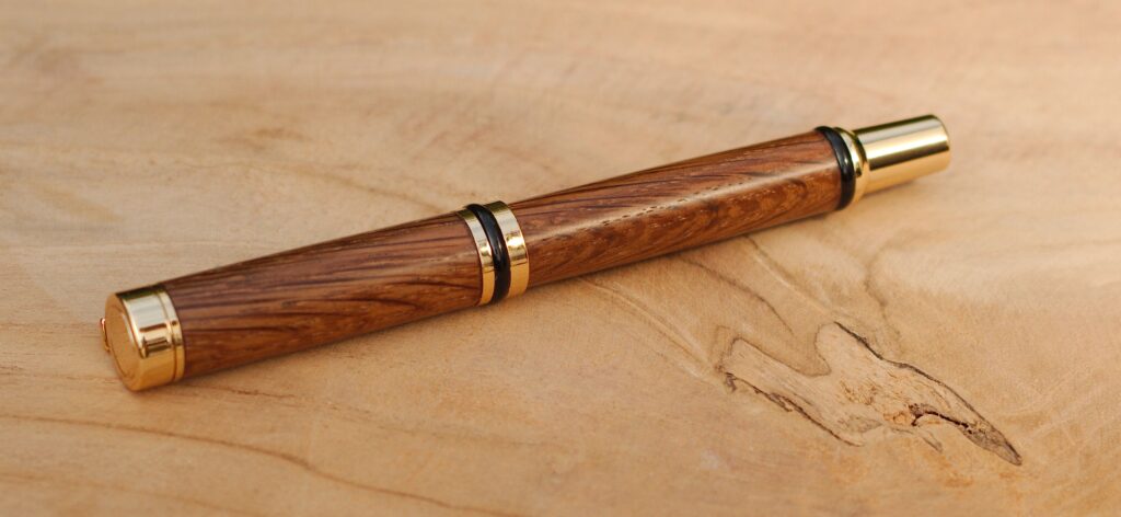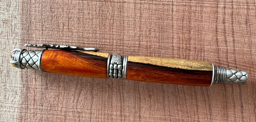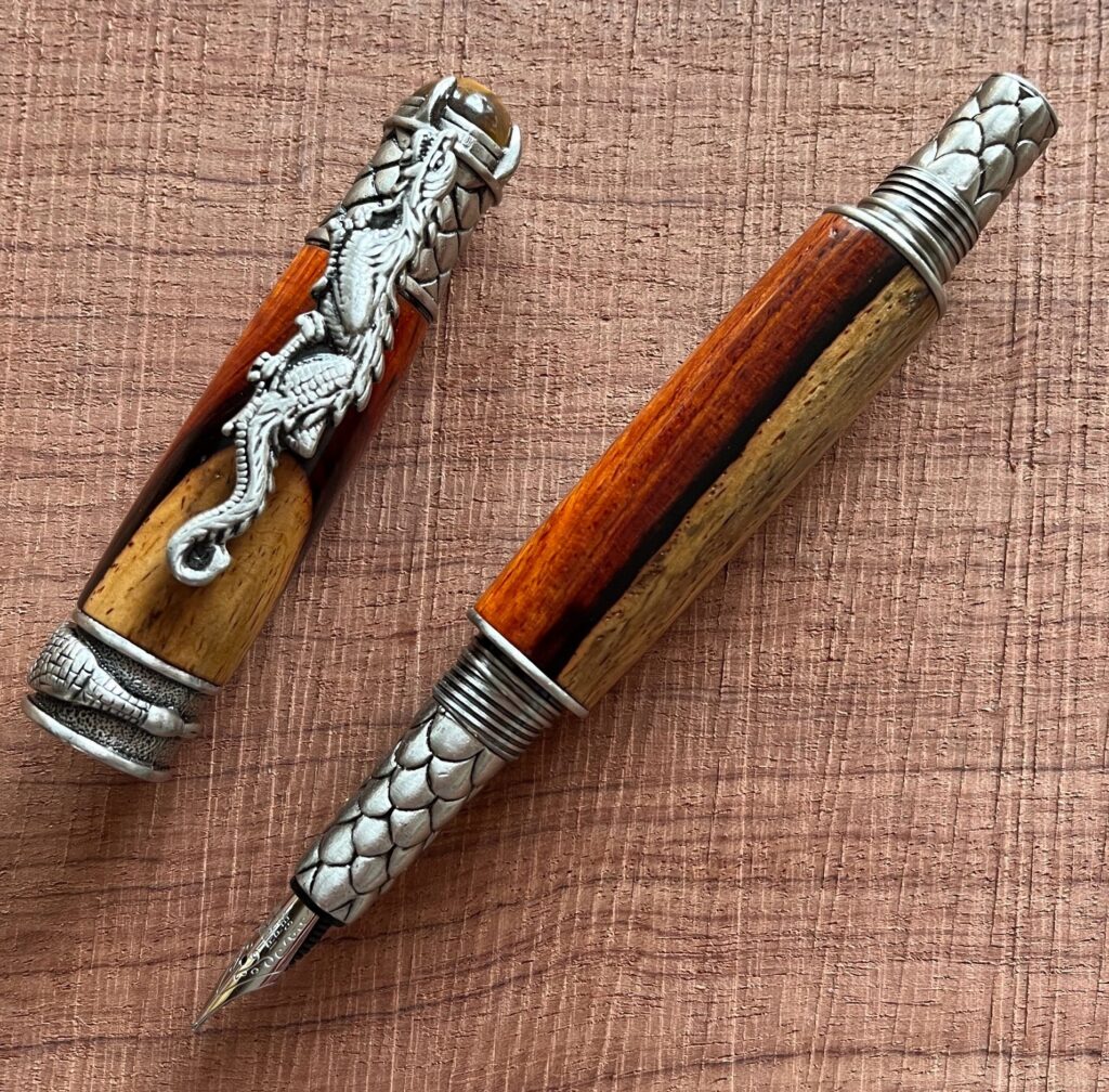 De vulpen die ik vandaag wil uitlichten is de Dragon pen, die gemaakt is uit een zeer fraai stukje Cocobolo hout. Cocobolo is een edele hardhout soort uit Centraal Amerika. Opvallend in dit hout is de tekening die erin zit.