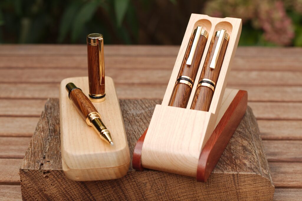 Mij was in eerste instantie gevraagd of ik pennen kon maken en graveren. Pennen graveren doe ik niet, want ik vind dat wordt het zo’n reclameding. Het doet afbreuk aan de houten pen. Daarnaast zou het echt om een heel fors aantal gaan.