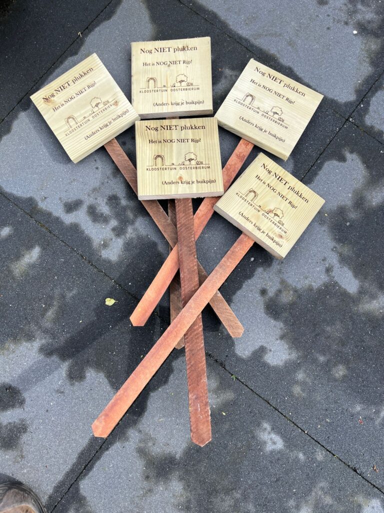 Dus het verzoek kwam om daar ook wat bordjes voor te graveren. Dan kunnen we het bij de groente en fruit zetten wat nog niet helemaal rijp is. Dan weet men, dat je gewoon nog even geduld moet hebben.
