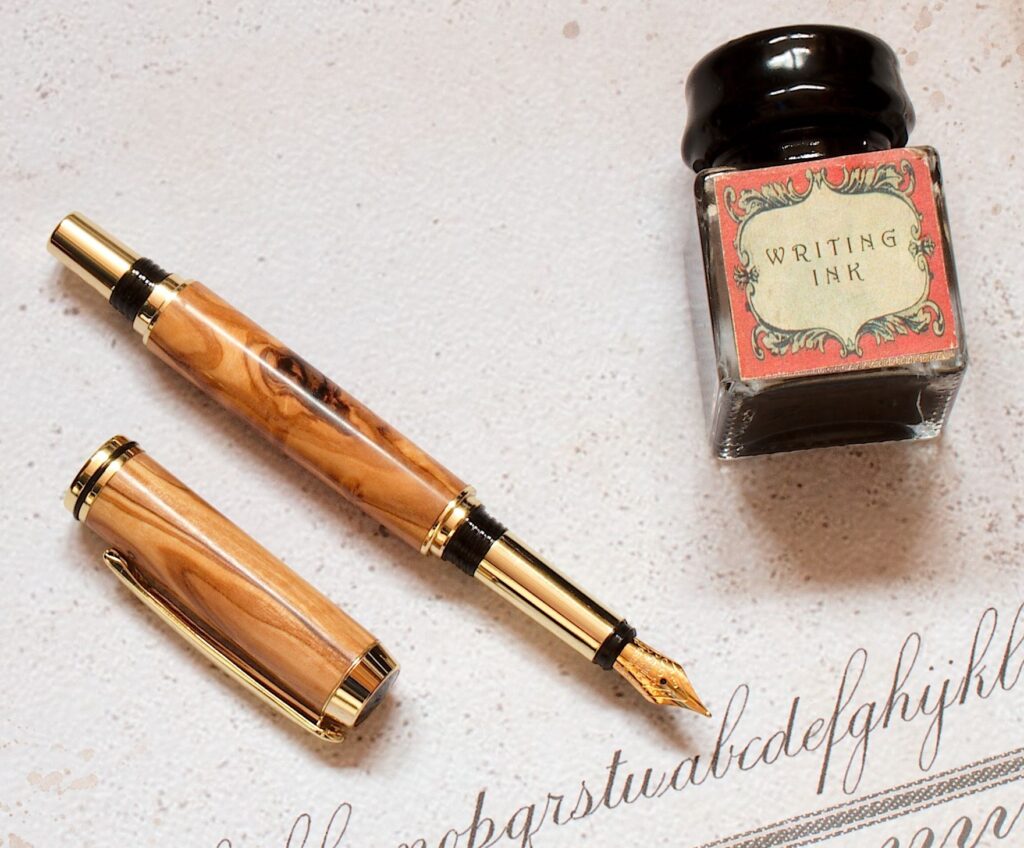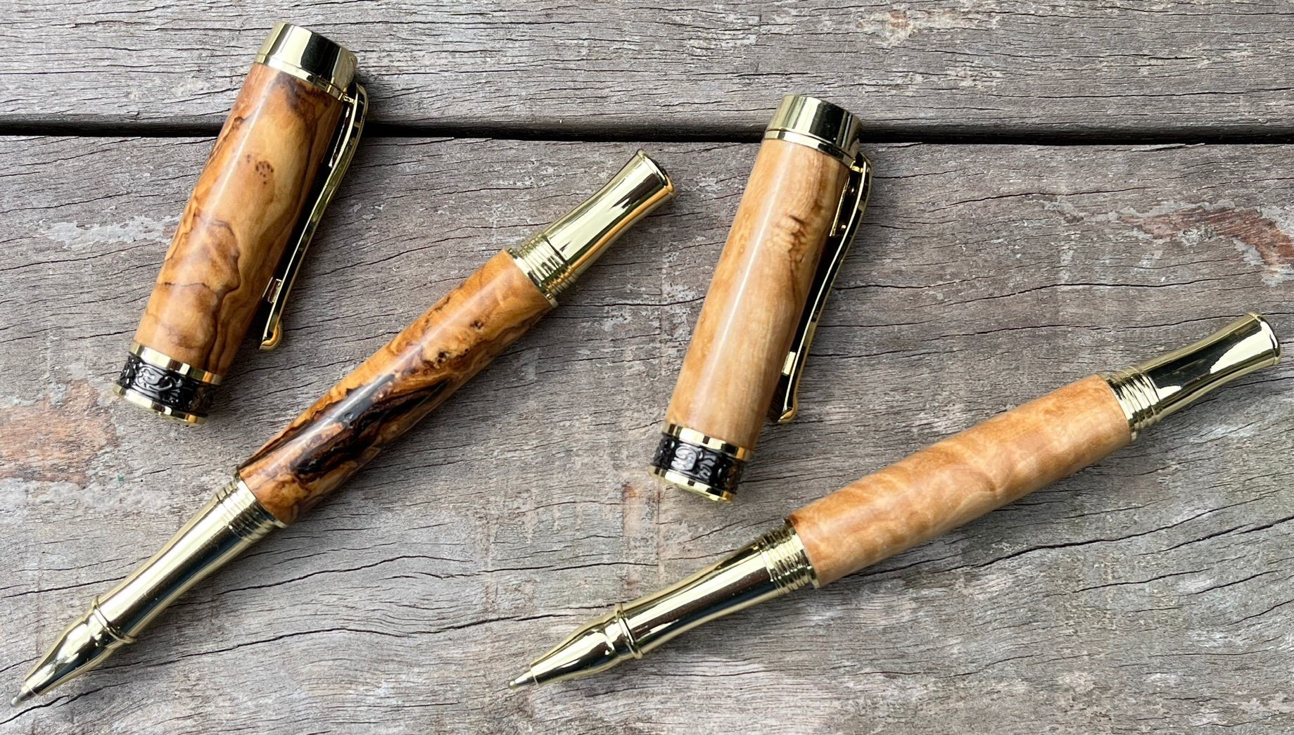 Voor deze pennen heb ik de Lucky Goud set gebruikt, die echt heel mooi combineren met het Olijfhout.