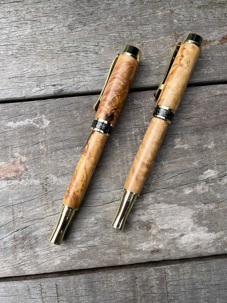 Zo heb ik deze afgelopen zomer ook een paar mooie geboortepennen mogen maken van Olijfhout.